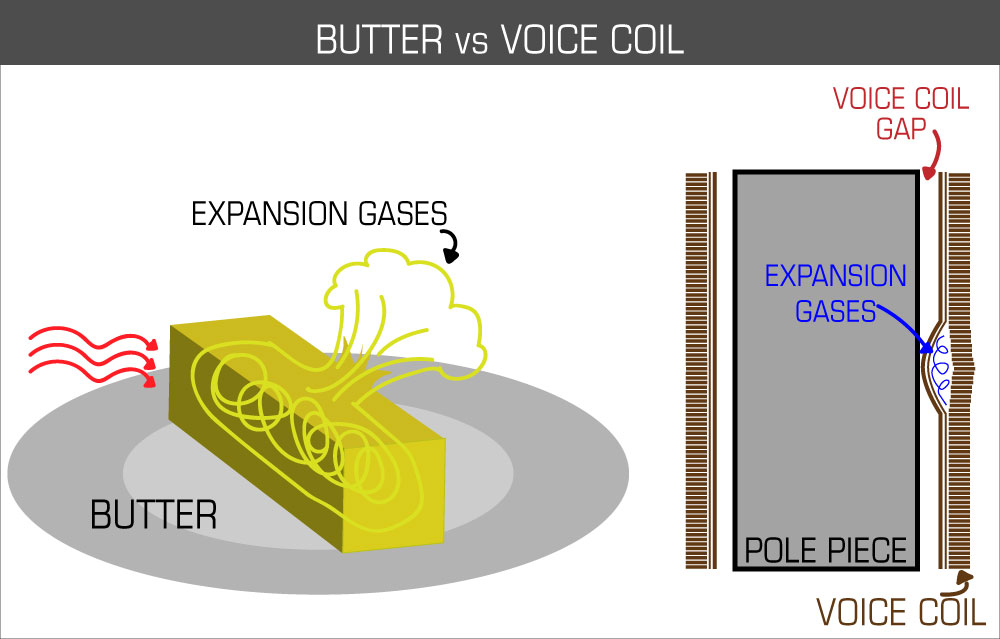 We get a lot of emails here at the Tech Talk. People ask us, “what sort of box should I build?” Or “what woofers should I buy?” And of course, “why did my woofer blow?” Now we’ve addressed woofer failure, both mechanical and thermal, before on the Tech Talk. Today, though, we’re going in depth on the various forms in which thermal failure can manifest itself. Plus, I’m going to use some fancy butter analogies, and how often do you get to hear that?